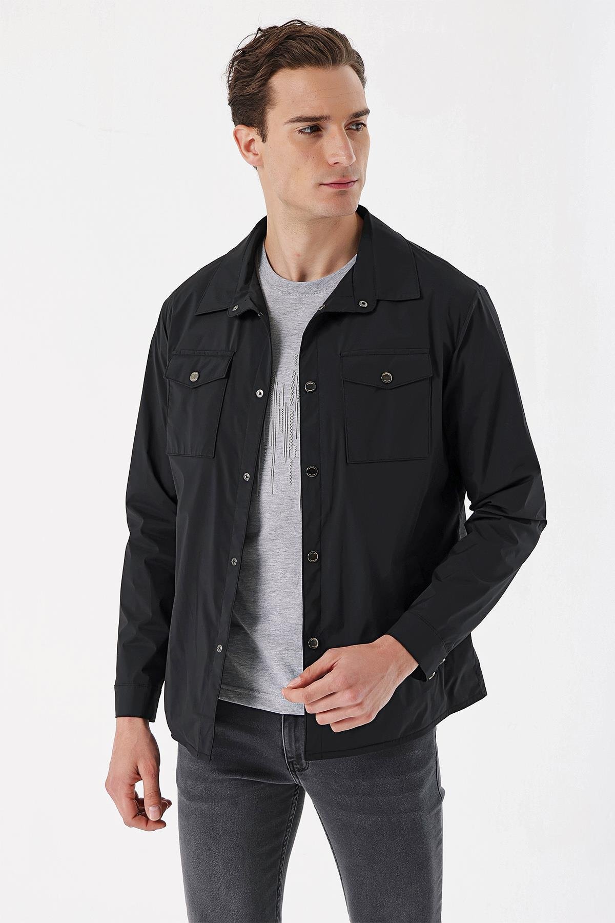 Morven Erkek Siyah Gofre Dinamik Fit Baharlık Gömlek Mont (23YS024002001)