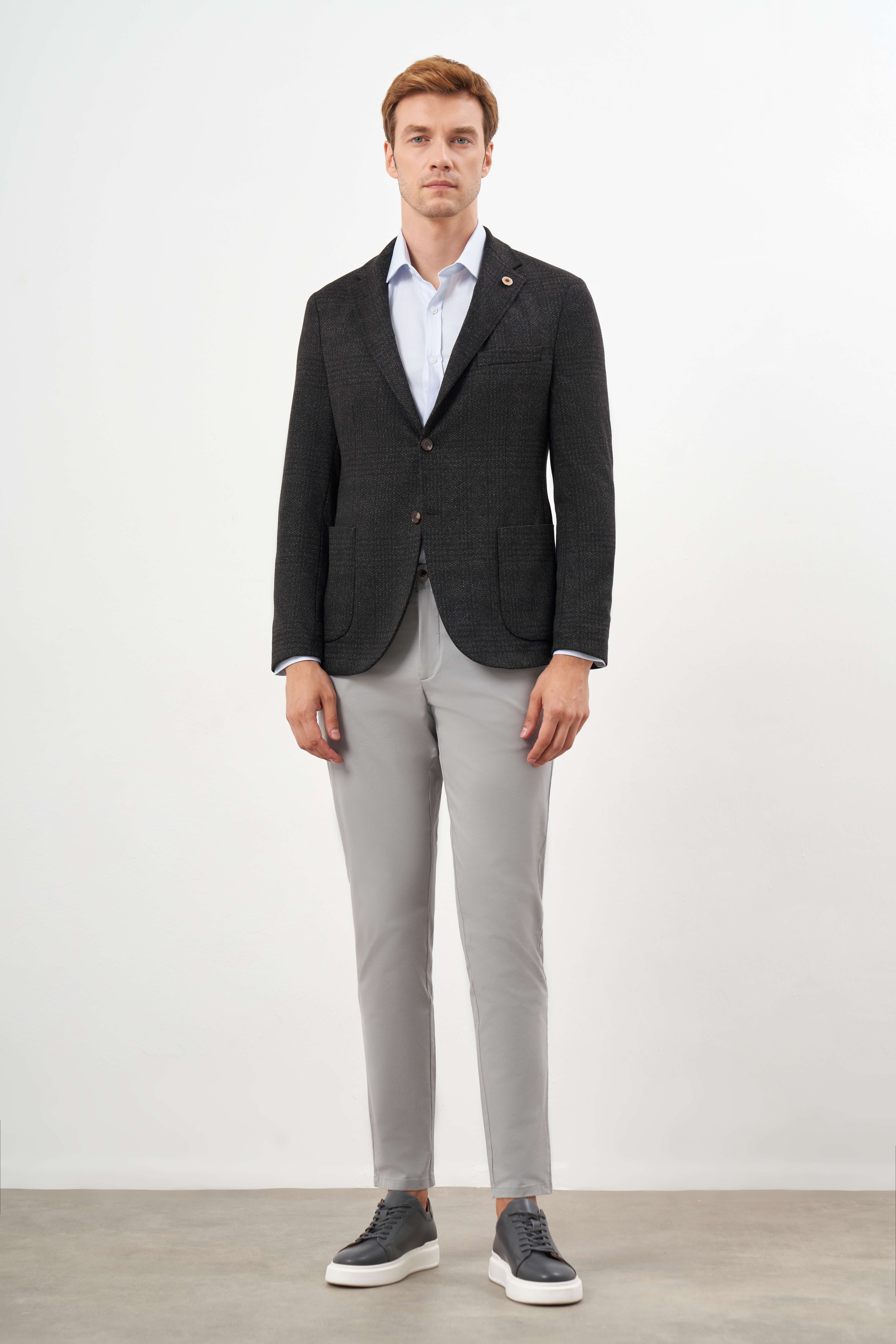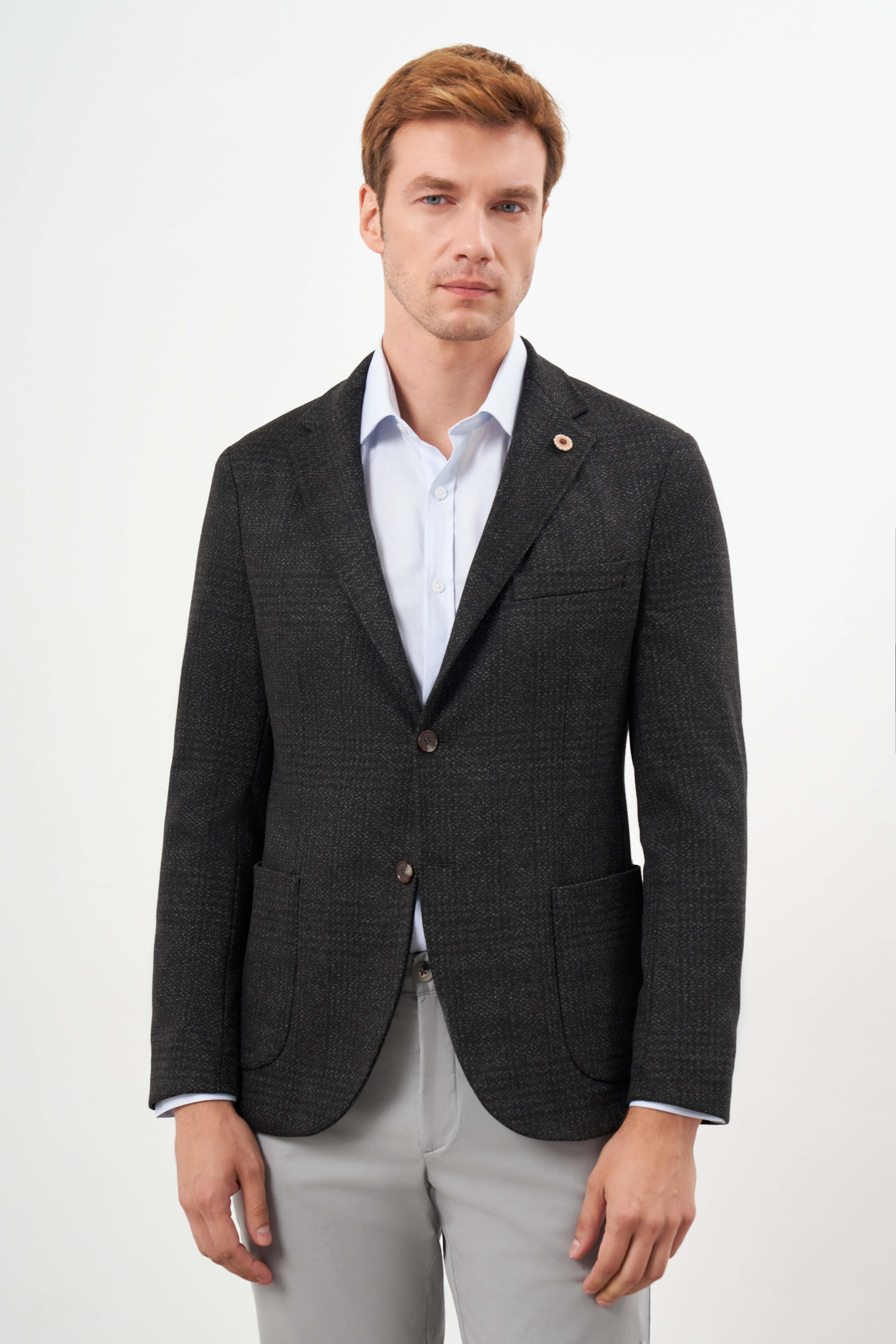 Morven Erkek Siyah Örme Slim Fit Torba Cep Mono Yaka Spor Ceket (24MS002010001)