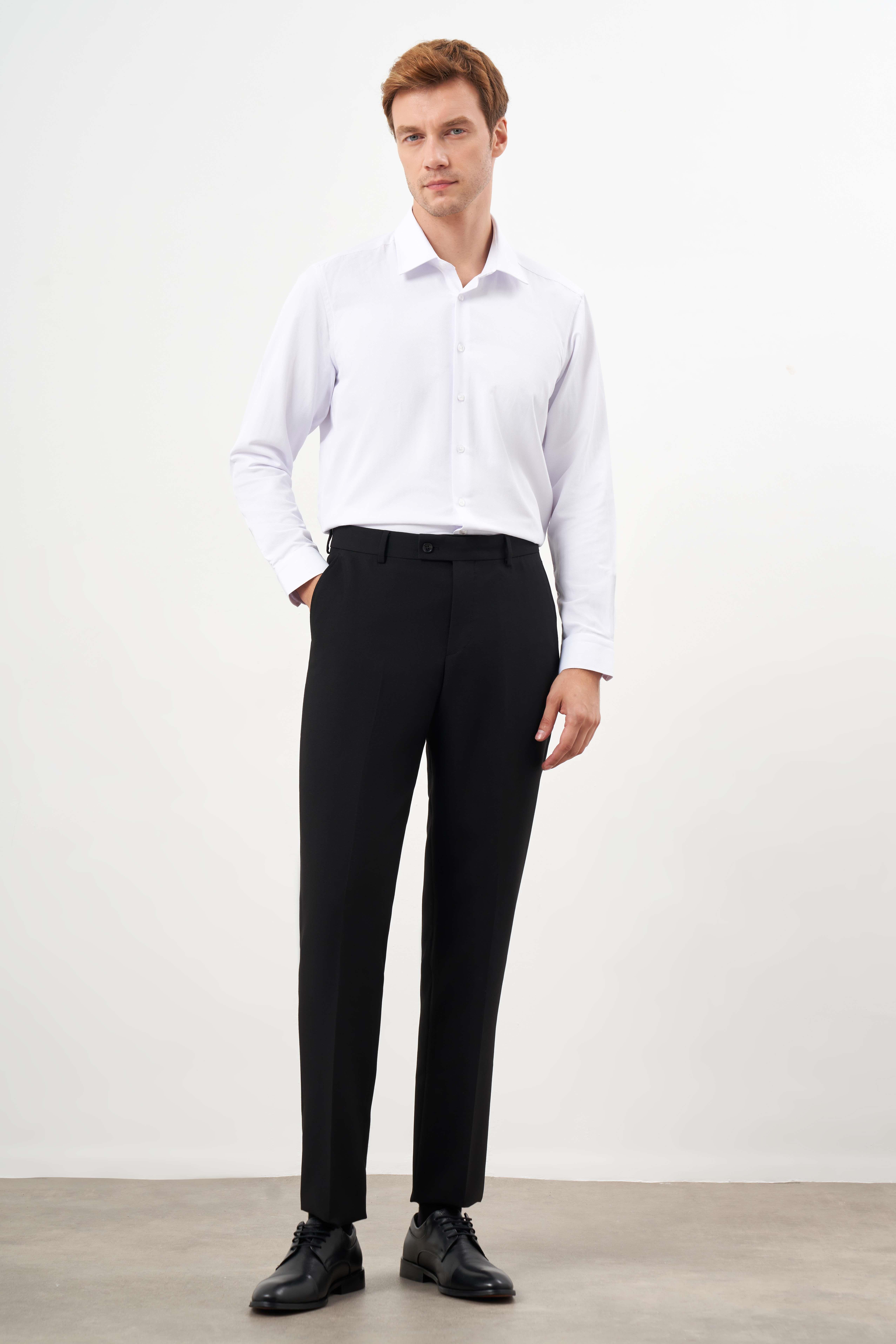 Morven Erkek Siyah Poliviskon Basic Düz Desen Dynamic Fit Classic Pantolon (24MC003016001)