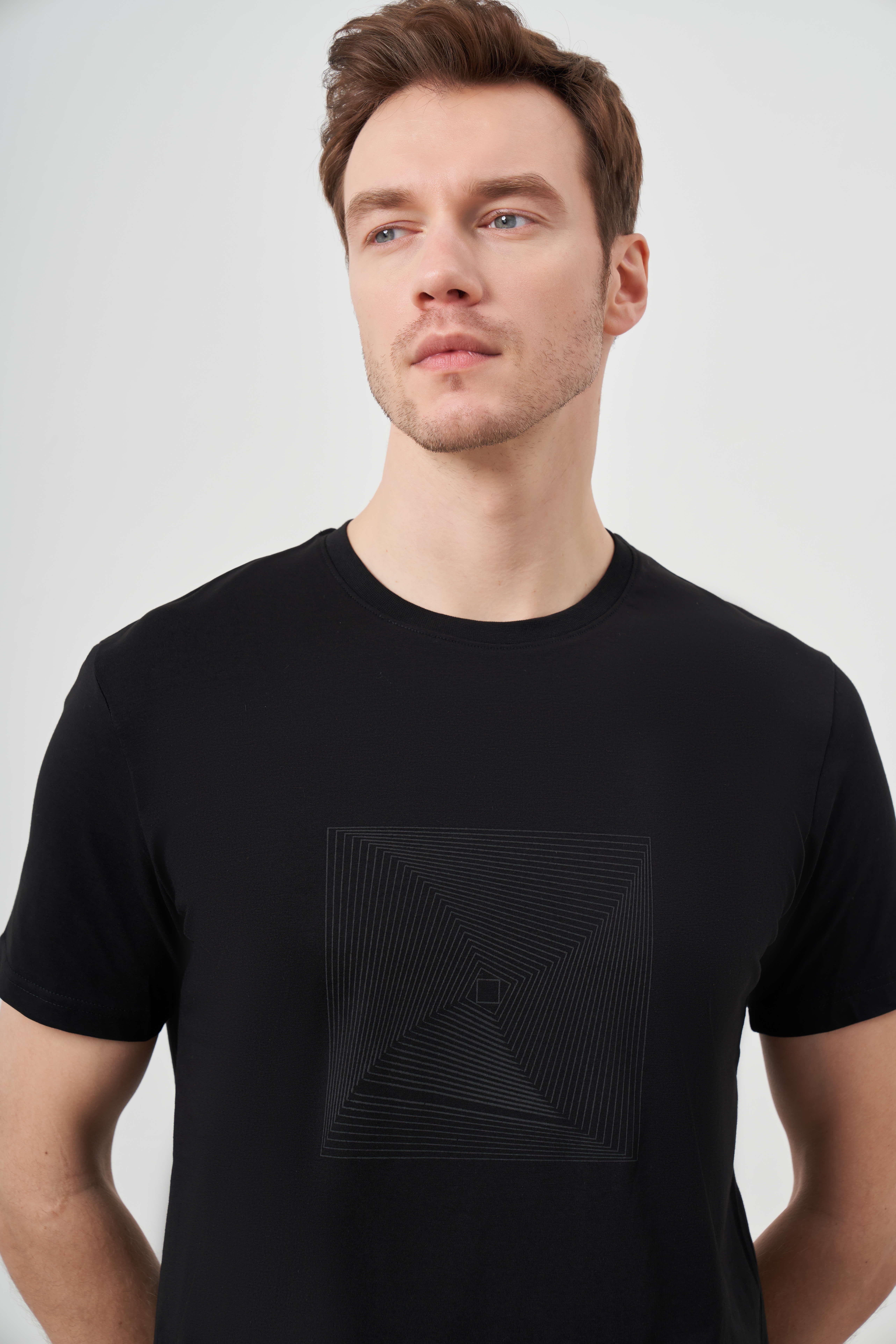 Morven Erkek Siyah Trend Süprem Baskılı Bisiklet Yaka Dynamic Fit T-Shirt (24YS018003001)