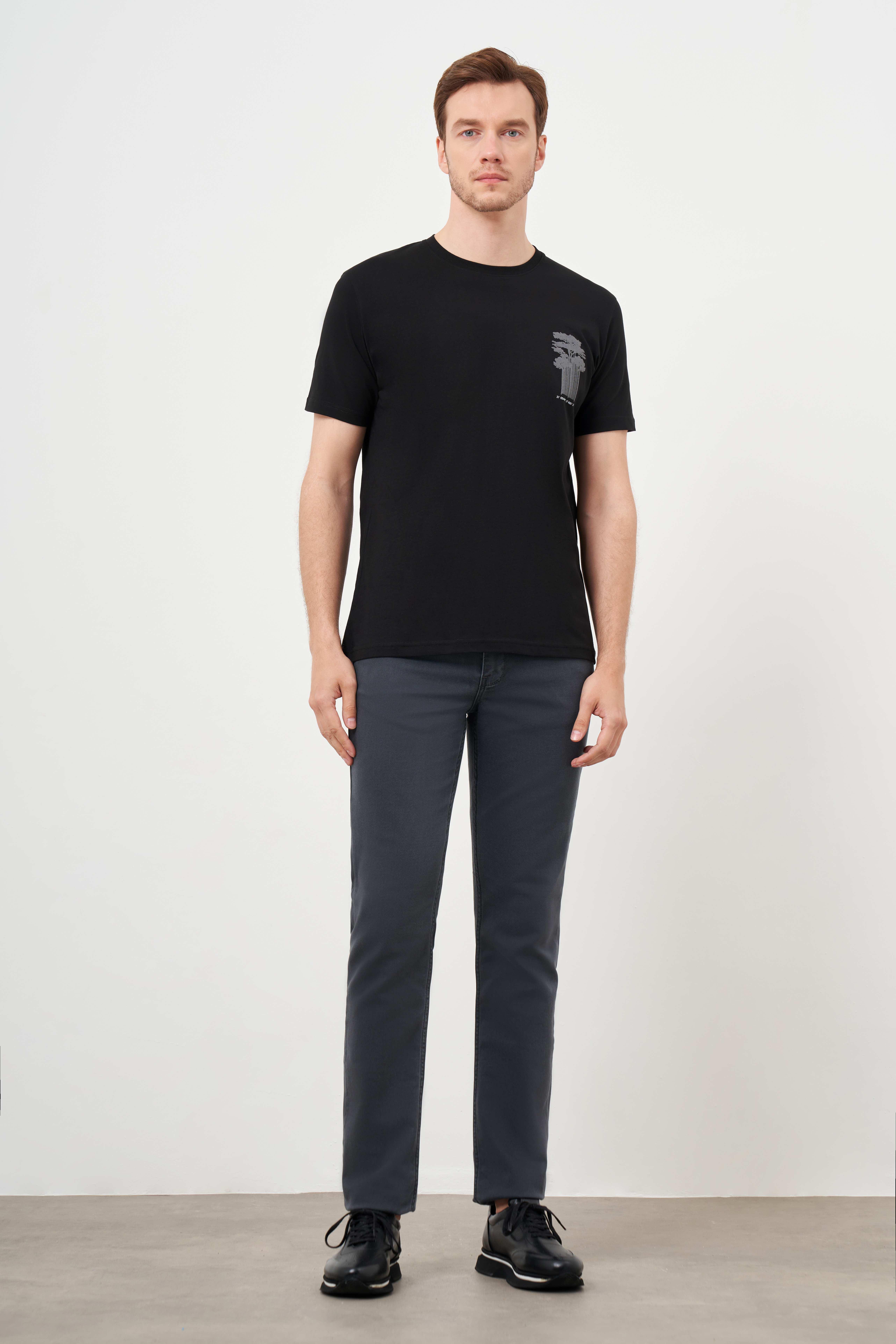 Morven Erkek Siyah Trend Süprem Baskılı Bisiklet Yaka Dynamic Fit T-Shirt (24YS018007001)