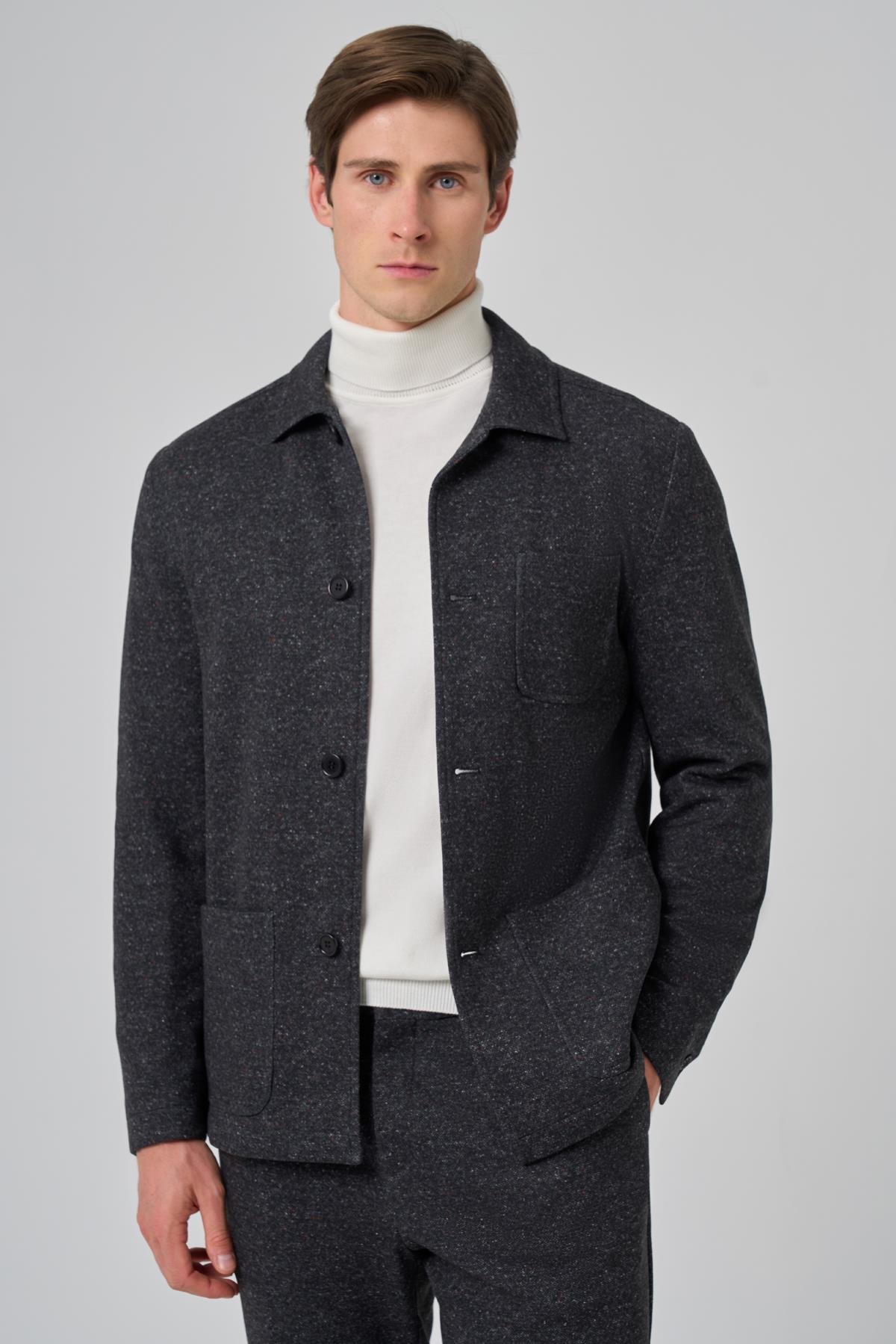 Morven Erkek Siyah Yünlü Berberi Yaka Torba Cepli Gömlek (26KS022004001)