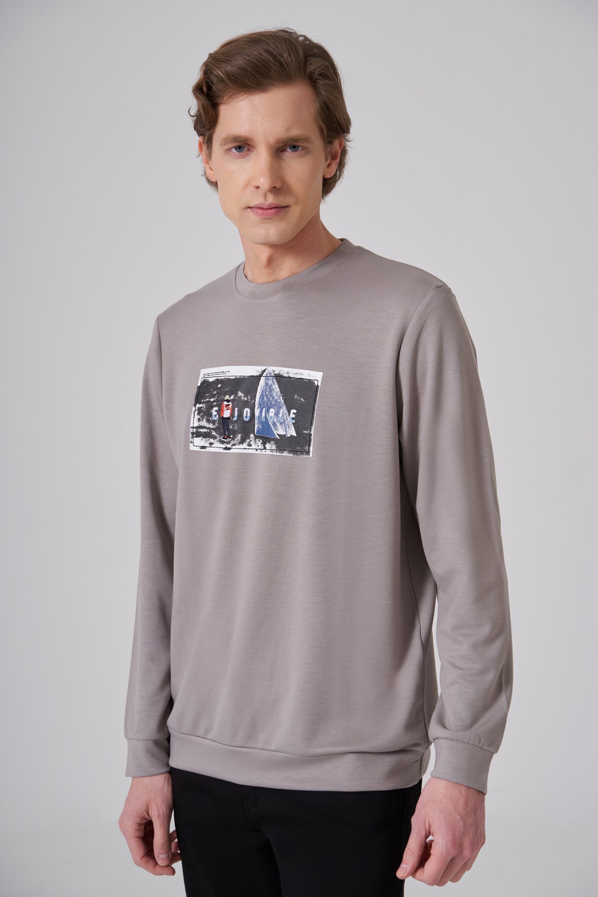 Morven Erkek Taş Trend Baskılı Bisiklet Yaka Sweat-Shirt (26KS063015870)