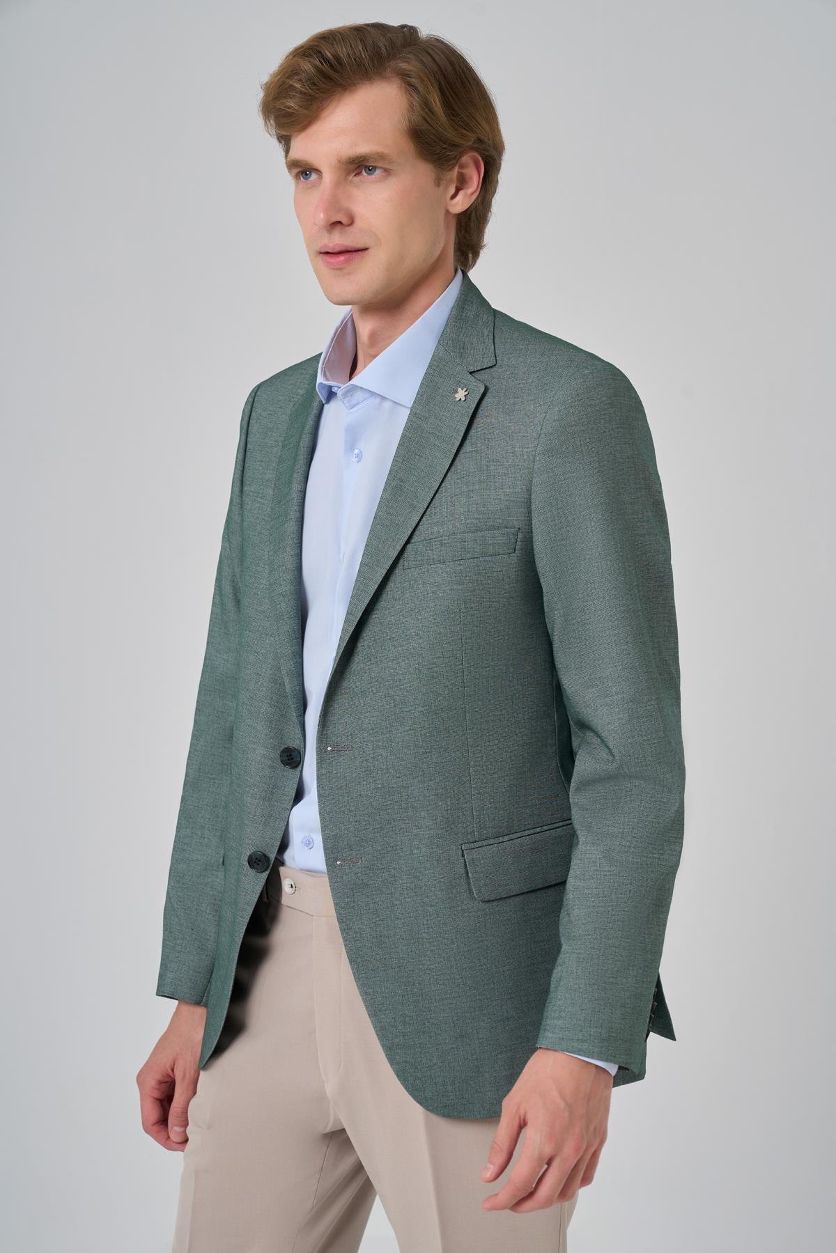 Morven Erkek Yeşil Yünlü Dynamic Fit Rahat Kesim Ceket