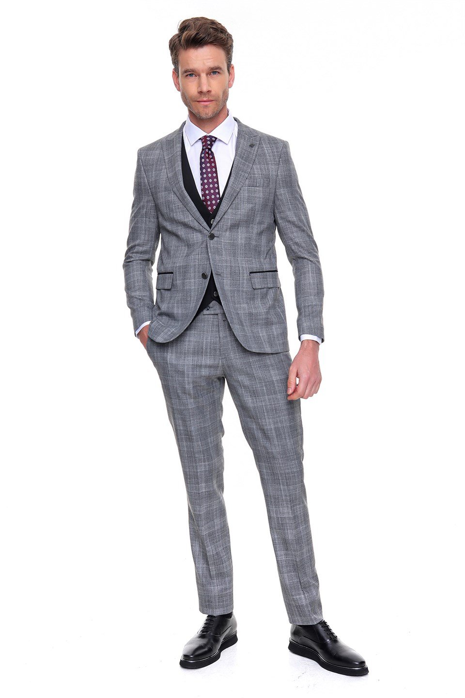 Morven Erkek Koyu Gri Rebul Kombinli Yelekli Slim Fit Dar Kesim 6 Drop Takım Elbise